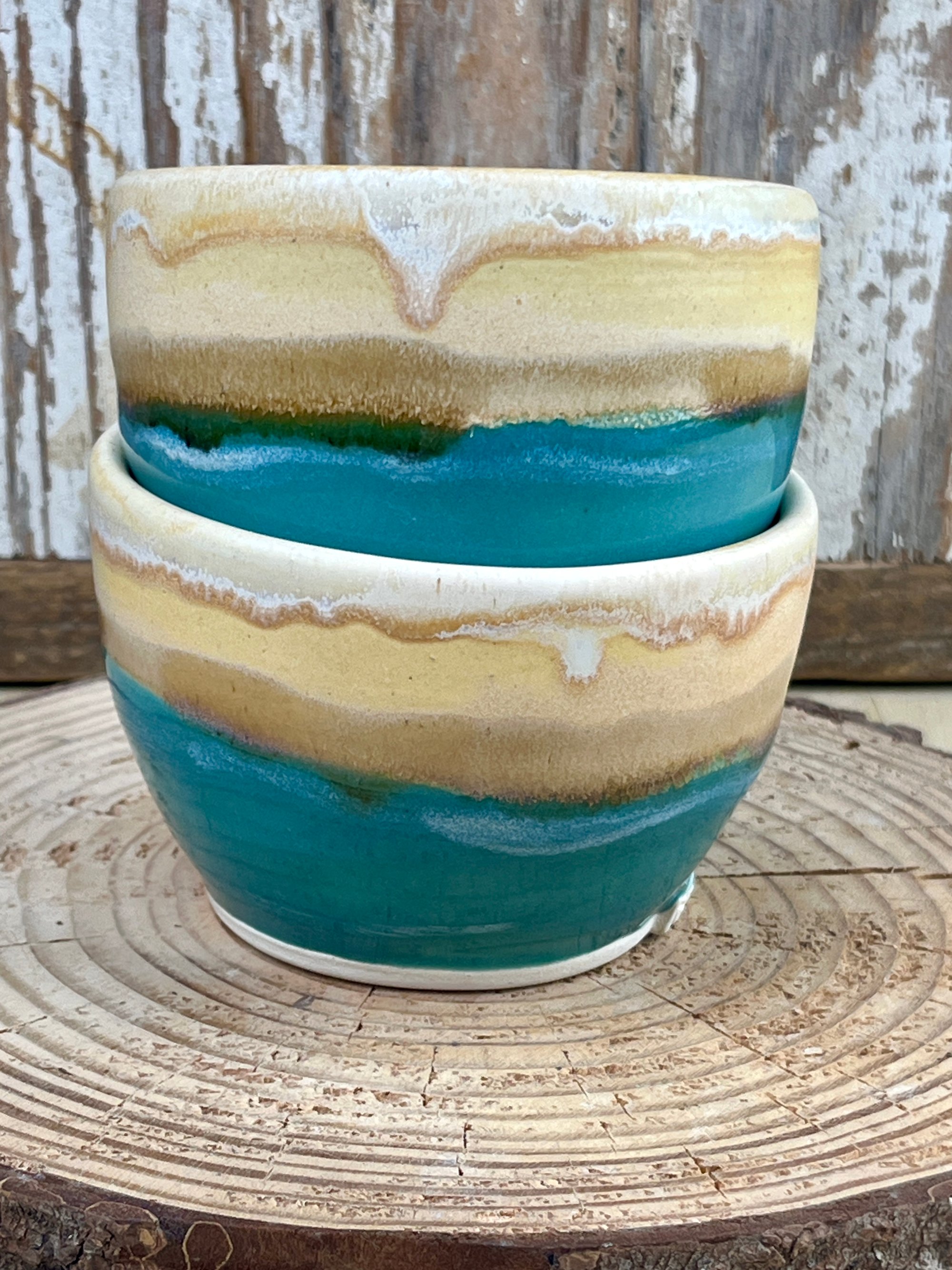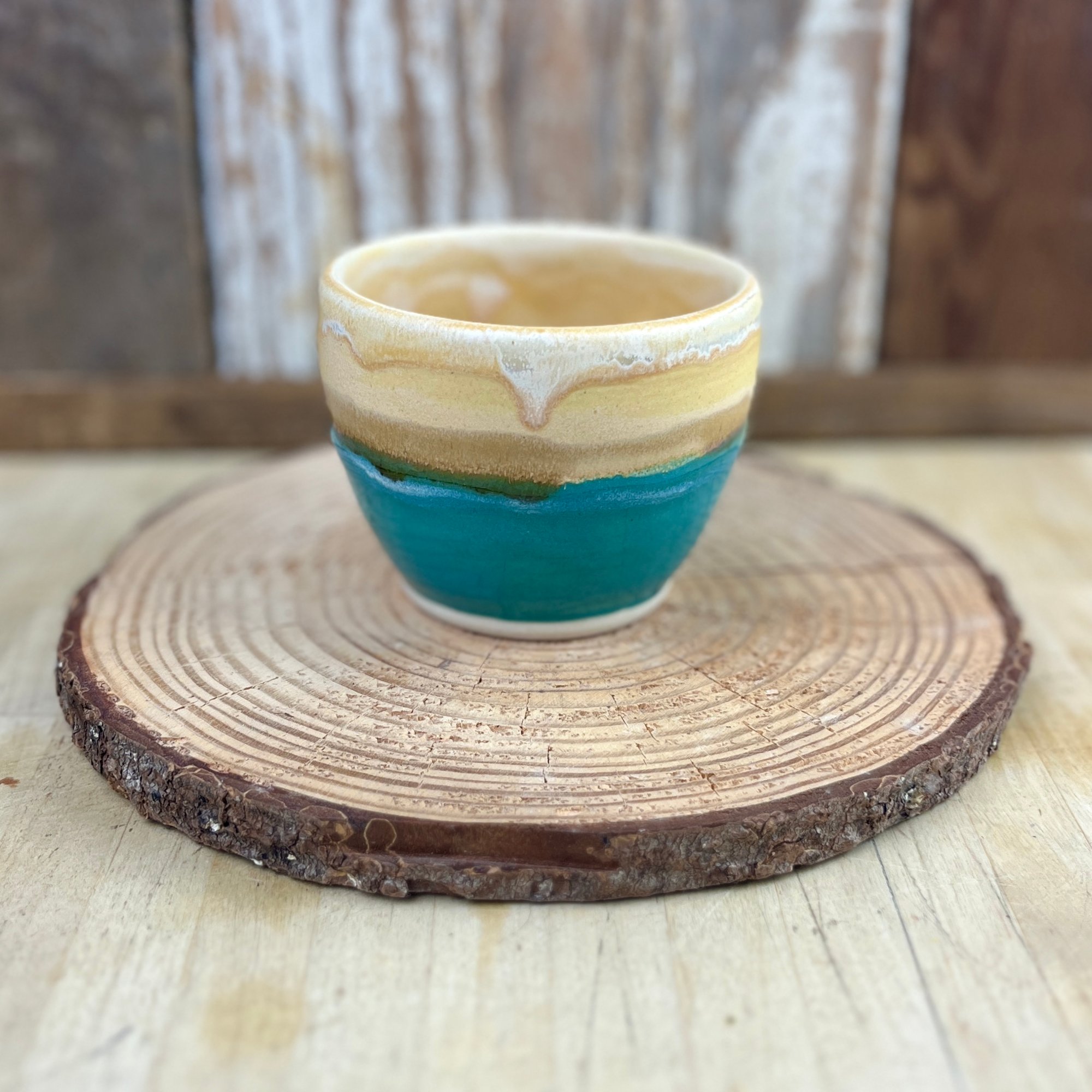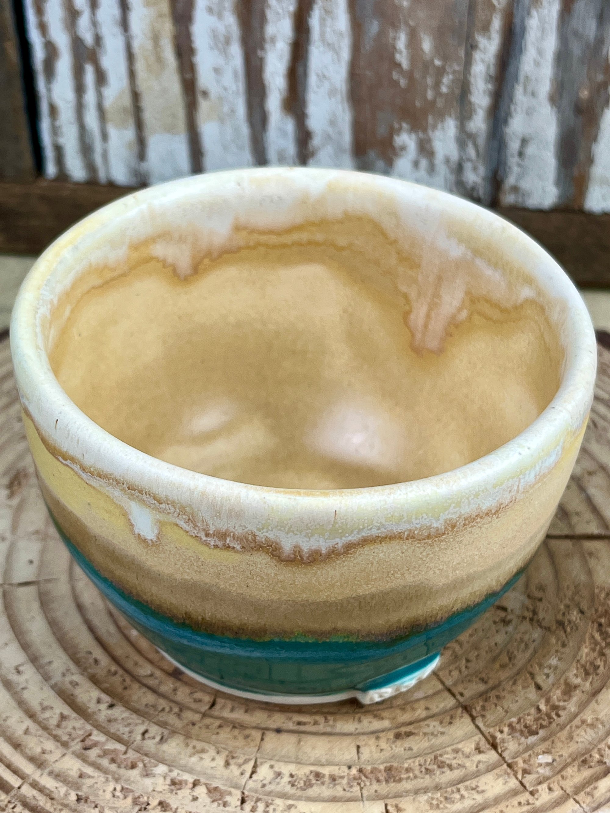 Thrown on the wheel and glazed using 2 colors for a lovely layered effect.