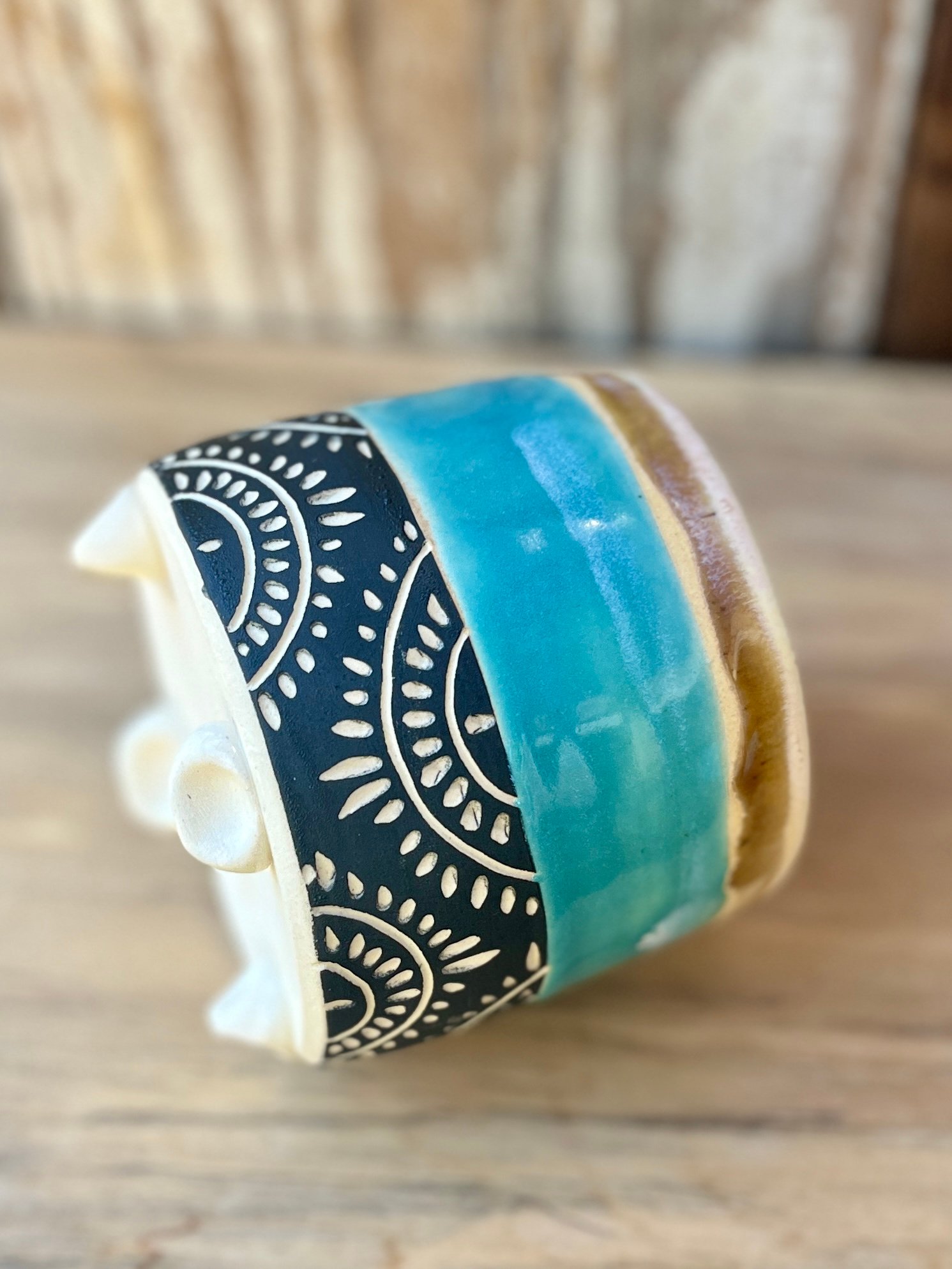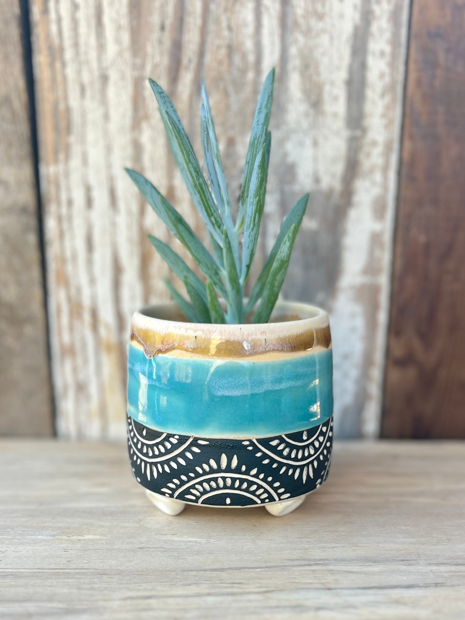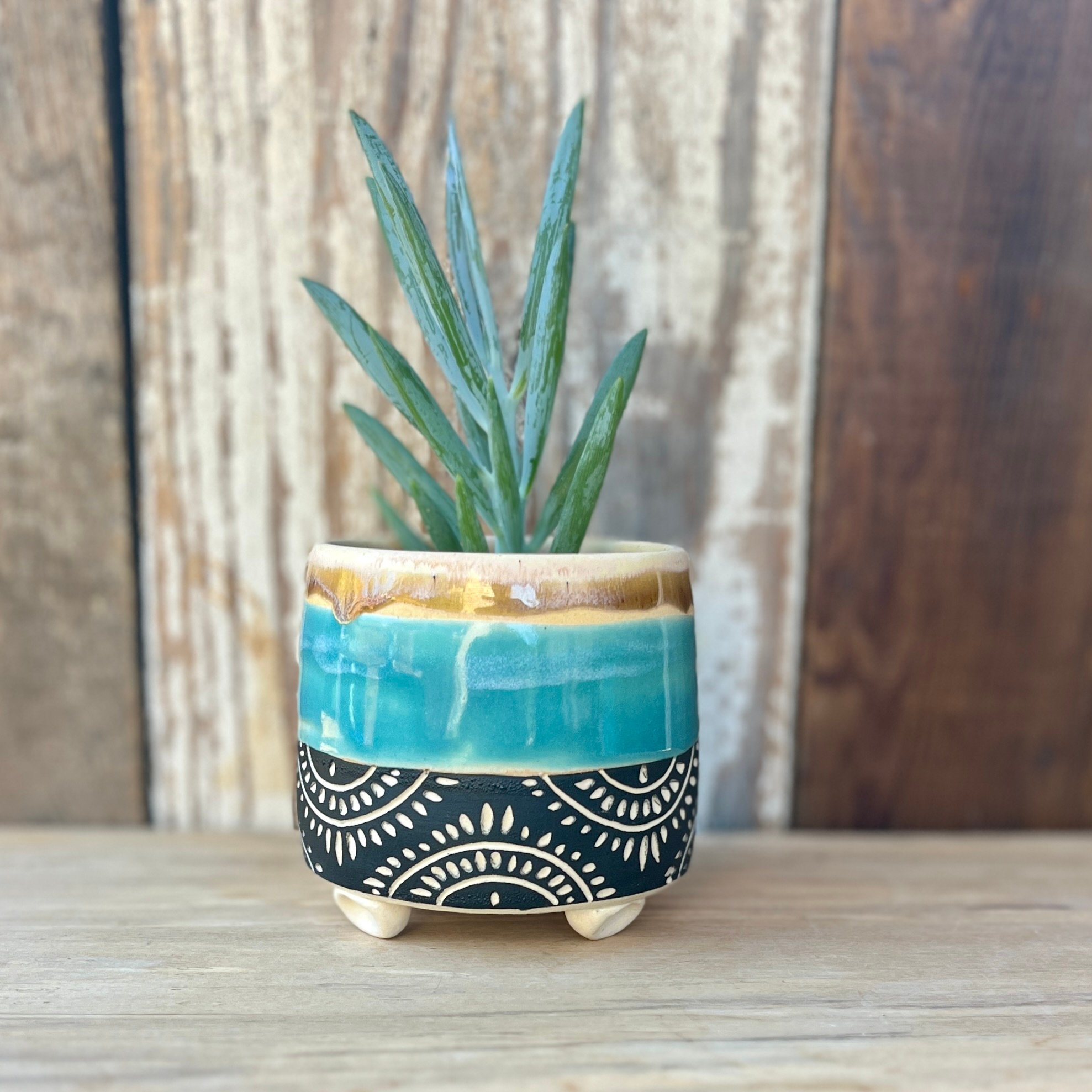 Create a magical space with this fun planter. It has sturdy little feat, and a small drainage hole. Perfect for succulents or small plants.