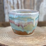 This little bowl was thrown on the wheel and glazed using 3 colors for a lovely layered drippy effect. It's the perfect size for your snack or a favorite dip. Can also be used as a trinket dish. It holds approx 1 cup.