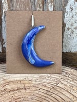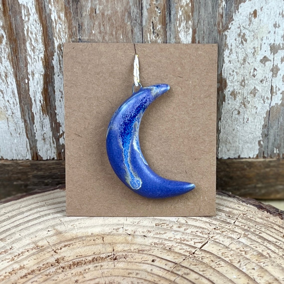 This beautiful crescent moon is hand-formed and has a dreamy purple glaze. It can be worn as a necklace or hang it up for decoration. I have one in my car hanging from the front mirror.
